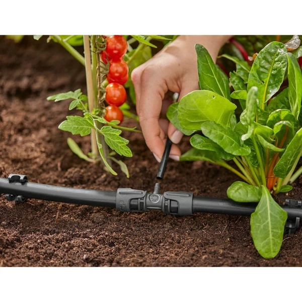 Le T-piece 13204-20 du micro-système de goutte à goutte GARDENA est utilisé pour le branchement avec transition du tuyau d’installation de 13 mm (1/2 ») au collecteur de 4,6 mm (3/16 »). Les cinq pièces en T incluses ont chacune des entrées et des sorties pour le tuyau de pose et une sortie pour le tuyau de distribution pour bifurquer vers les plantes individuelles dans le lit. La technologie de connexion brevetée « Quick & Easy » permet l’extension rapide, simple et flexible du Micro-Drip-System dans le jardin. L’installation est intuitive et explicite en raison de la symbolique intelligente. Le clic en tant que signal clairement audible en position fermée signale la fixation correcte. Le système est très durable en raison de sa réutilisabilité, car grâce à la technologie de connexion GARDENA « Quick & Easy », tous les composants peuvent être connectés sans effort sans outils, étendus de manière flexible et facilement détachés à nouveau pendant les travaux de conversion. En combinaison avec l’unité de base 1000 (art. n° 13333-20) ou l’unité de base 2000 (art. n° 13310-20) disponibles séparément, le micro-système goutte à goutte est scellé de manière fiable et alimenté avec une pression d’eau uniforme.
