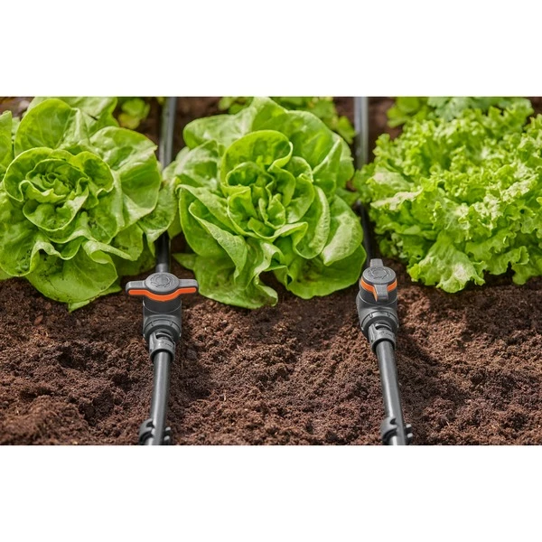Avec la vanne d’arrêt GARDENA 13207-20, les tuyaux d’installation individuels de 13 mm et les chaînes de tuyaux peuvent être étranglés ou fermés dans le système de micro-goutte GARDENA. Grâce à la fonction de régulation infiniment variable, le débit d’eau peut être adapté individuellement aux besoins en eau de chaque brin de plante. L’installation est intuitive grâce à la technologie de connexion brevetée GARDENA « Quick & Easy » et explicite grâce à la symbolique intelligente. Le clic en tant que signal clairement audible en position fermée signale la fixation correcte. Le système est très durable en raison de sa réutilisation, car tous les composants peuvent être connectés sans effort sans outils, étendus de manière flexible et facilement retirés pendant les travaux de conversion.
