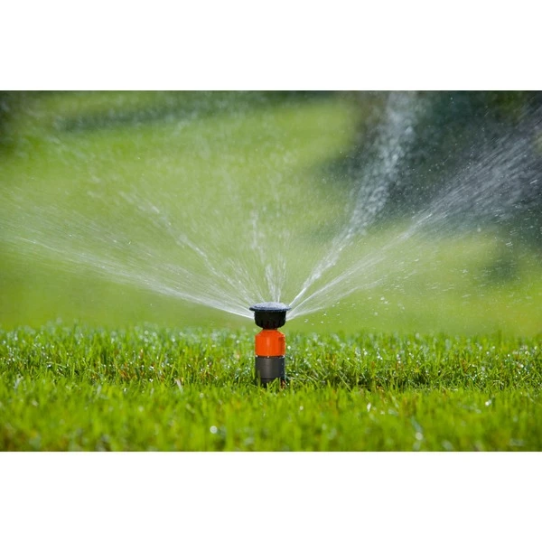 La turbine escamotable T 100 GARDENA – intégrée au système d’arrosage GARDENA – est idéale pour l’arrosage des petites pelouses jusqu’à 100 m². Elle peut être combinée aux turbines escamotables T 200 et 380 (Réf. 8203-29 et 8205-29) ainsi qu’à l’arroseur oscillant escamotable OS 140 (Réf. 8220). La portée est réglable de manière variable entre 4 et 6 m pour la surface concernée. Le secteur à arroser peut être réglé avec précision sur la tête d’arrosage entre 70 et 360°. Une languette de rotation permet une séparation définie des secteurs. Le filtre anti-saletés intégré permet un fonctionnement ininterrompu. L’installation d’un purgeur automatique (Réf. 2760-20) dans la conduite rend le système d’arrosage résistant au gel. Le raccordement est effectué via un filetage femelle de 1/2″. Arrosage pratique La turbine escamotable T 100 GARDENA permet d’arroser des pelouses allant jusqu’à 100 m² de manière facile et pratique. Pour l’arrosage de surfaces plus grandes, elle peut être installée en combinaison avec les turbines escamotables T 200 et T 380 et l’arroseur oscillant escamotable R 140. Pour des tailles de surfaces diverses Selon la taille de la surface à arroser, la portée de l’arroseur peut être réglée de manière variable entre 4 et 6 m. Réglage du secteur avec précision Le secteur à arroser peut être réglé avec précision entre 70 et 360°. Avec filtre anti-saletés Le filtre anti-saletés intégré permet un fonctionnement ininterrompu.