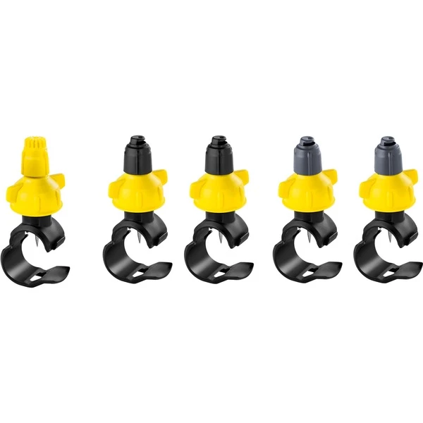 Les micro-asperseurs font partie du Kärcher Rain System. Ils peuvent être fixès à n’importe quel endroit sur le flexible Kärcher Rain System. L’installation peut se faire rapidement, facilement et sans besoin d’outils. Le pointeau intégré sur le manchon ouvert est inséré tout simplement dans le flexible. En le fermant, le micro-asperseur est fixé solidement sur le flexible. L’ajustement du micro-asperseur peut être réglé aussi bien en direction horizontale que verticale grâce à la tête rotative. La quantité d’eau peut être réglée sur le manchon de 0 à 55 l/h en fonction des besoins, en épargant de cette façon les ressources. Le système très efficace “Kärcher Rain System” travaille à une pression jusqu’à 4 bars et est équipé d’un tuyau 1/2″ avec des manchons goutte-à-goutte et de pulvérisation et combine les avantages d’un arrosage goutte-à-goutte à l’arrosage traditionnel.