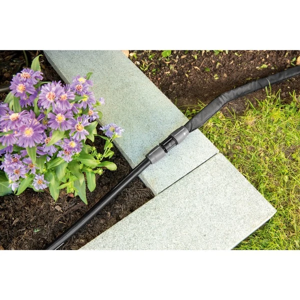 L’embout en I fait partie du Kärcher Rain System®. Il raccorde deux flexibles Kärcher Rain System® ou flexibles microporeux l’un à l’autre et permet un réglage individuel répondant aux besoins. L’embout en I est idéal pour le raccordement du flexible microporeux au bout du flexible Kärcher Rain System® ou pour le raccordement de deux flexibles Kärcher Rain System® l’un à l’autre. Le tuyau peut être installé facilement sans besoin d’outils. Il est poussé tout simplement sur l’embout en I et fixé à l’aide d’un écrou de raccordement. Le système très efficace Kärcher Rain System® combine les avantages d’un arrosage goutte-à-goutte à l’arrosage traditionnel, il travaille à une pression jusqu’à 4 bars et est équipé d’un tuyau 1/2″ avec des manchons goutte-à-goutte et de pulvérisation.