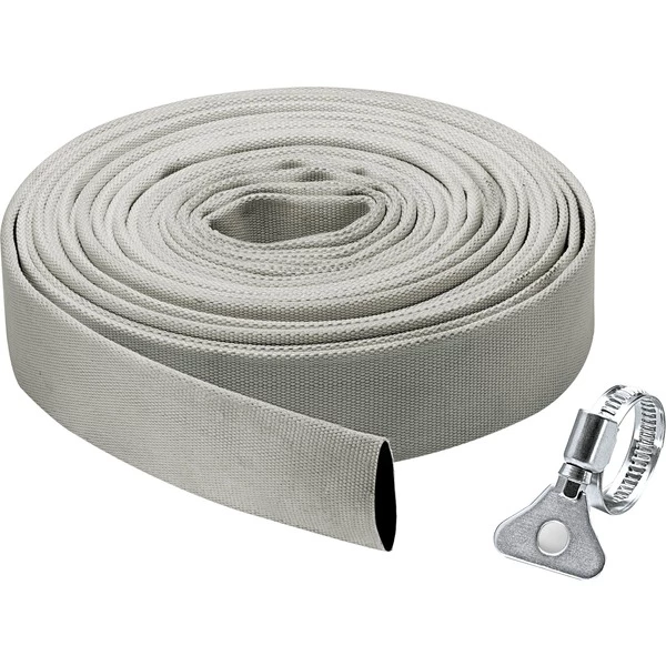 Le set contient un flexible plat très flexible 1 1/4″ et un collier de serrage en acier inoxydable (30-40 mm) avec écrou papillon pour un raccord sans outils. Le set avec flexible en tissu de Kärcher est particulièrement recommandé à être utilisé avec des pompes d’évacuation à eau claire et aux eaux chargées. C’est la solution parfaite pour l’évacuation de larges quantités d’eau, dans p.e. des zones inondées. Le flexible d’une longueur de 10 m peut être enroulé à plat, ce qui le rend très compact à ranger. La pression opérationnelle maximale est 5 bar.
